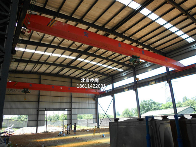 2、供电动葫芦移动使用的工字钢轨道或构架,由使用单位,根据跨度及起重量自行选择标准结构或自行设计,工字钢型号范围应符合技术参数表规定。