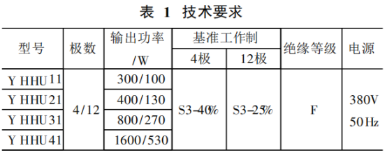 该产品在电动环链葫芦中为装入式封闭结构,共有四个规格组成的一个系列,根据电动环链葫芦工作特性,用户提供技术要求,如表1所示: