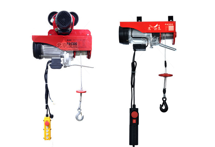 开关、电气:操纵开关为二挡按钮收市开关。手按向上(提升),手按向下(下降),复位时停止。同时上升物件到限位时,限位器拨动行程开关,切断电源,确保操作之安全。