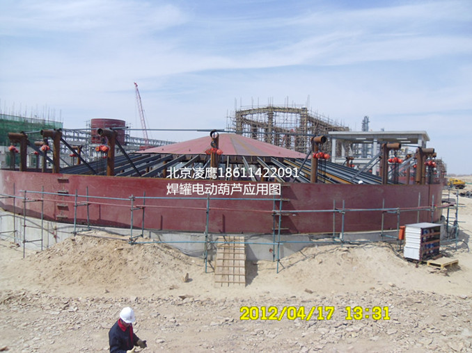 大型储罐广泛应用于工业生产各个行业,但在安装过程中经?;崤龅轿恢孟列?、空间不足等问题,无法采用大型起重机直接吊装。结合多年施工经验,采用电动葫芦边柱提升倒装法施工,克服了上述问题。焊罐电动葫芦在大型储罐应用中的安全措施如下: