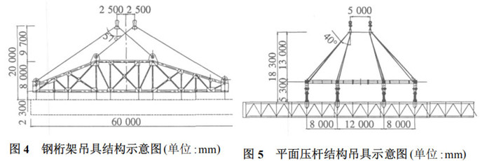 通过上述两种吊具结构形式比较,采用平面压杆结构较为合理。