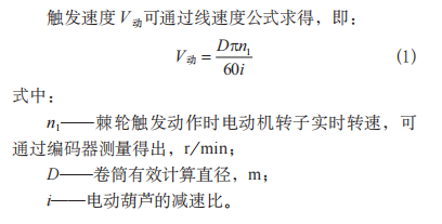 系统通过监测打杆电气开关的信号,编码器和计时器获取电动葫芦安全制动器的触发状态、触发转速及制停时间,并由式(2)求取制停距离。