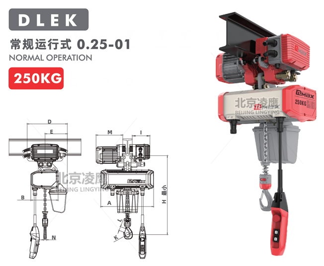 产品名称:0.25吨DLEK环链电动葫芦运行式