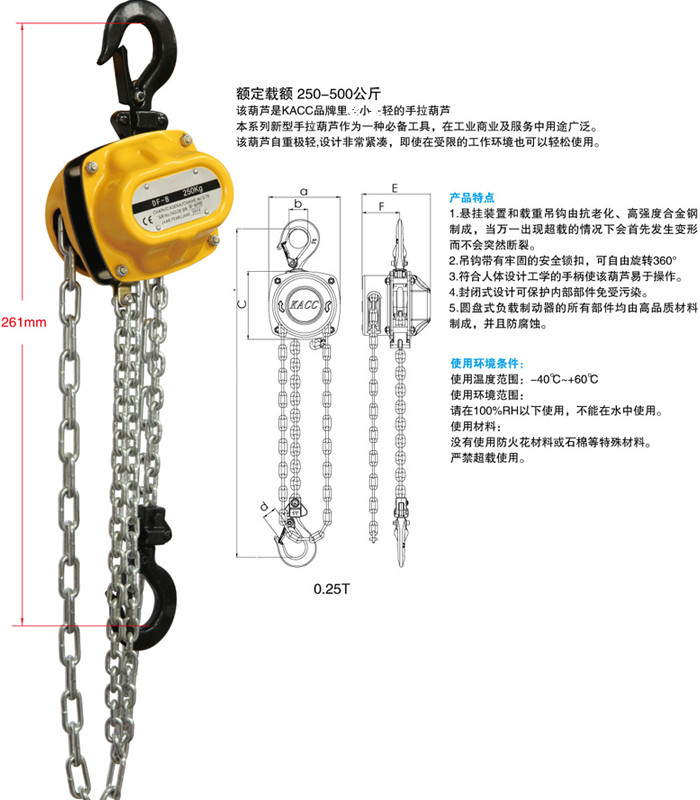 3、 ?符合人体设计工学的手柄使该葫芦易于操作。