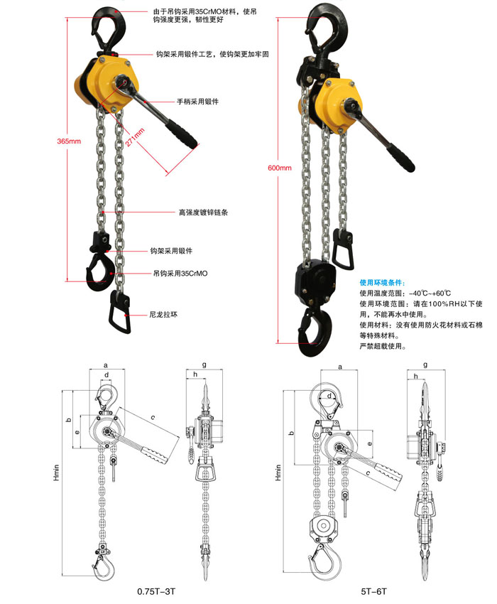 3、符合人体设计工学的手柄使该葫芦易于操作。