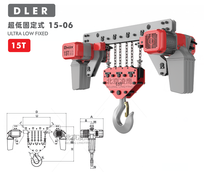 产品名称:15吨超低固定式DLEK环链电动葫芦